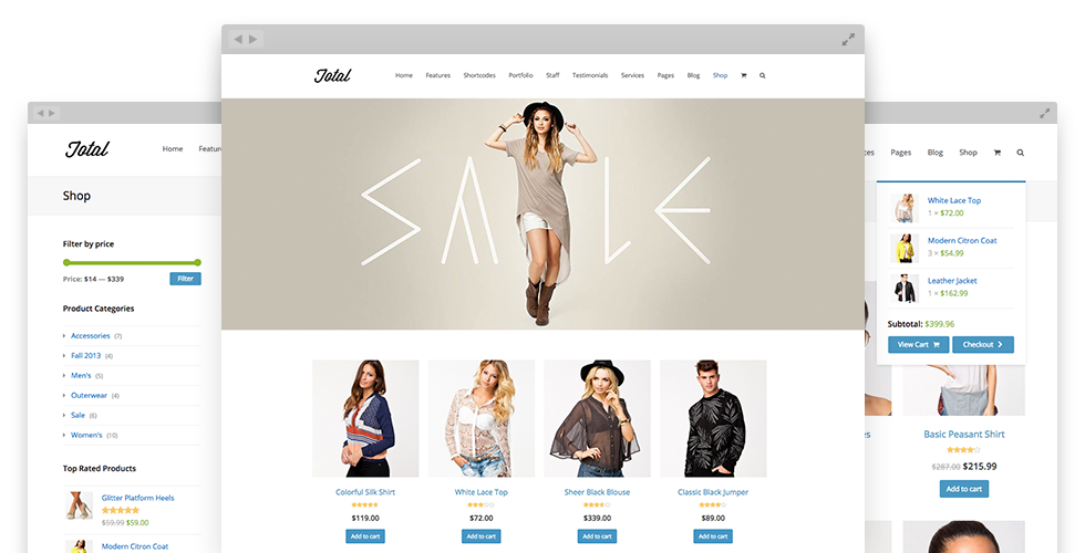 Easily create a store online and sell your products with Total and WooCommerce.